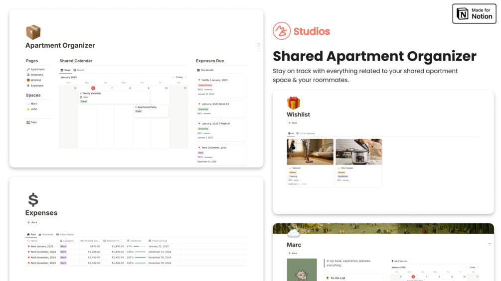 ☁️ Keep track of all aspects of a busy shared apartment with this Apartment Organizer Template! ☁️